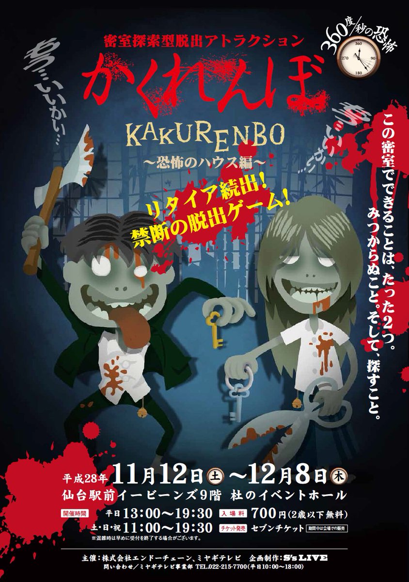 難易度 恐怖度パワーアップの密室探索型脱出アトラクション シン カクレンボ 7月1日より仙台にて開催中 株式会社宮城テレビ放送 事業局のプレスリリース
